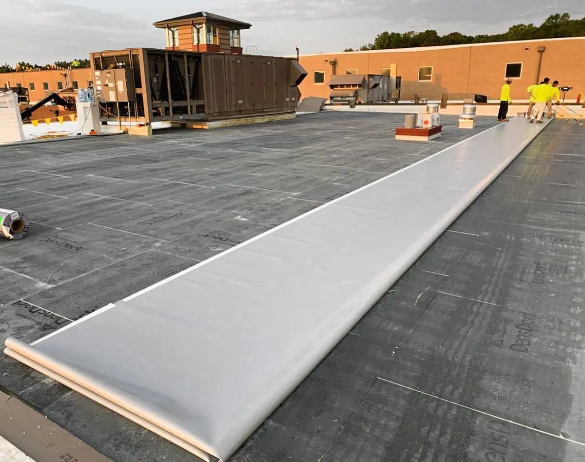 We install PVC membranes for commercial and industrial facilities requiring chemical, moisture, and fire resistance. PVC provides 25 to 35 years of reliable service and maintains a Class A fire rating. Heat-welded seams create a continuous, monolithic surface that prevents leaks and simplifies long-term maintenance.
